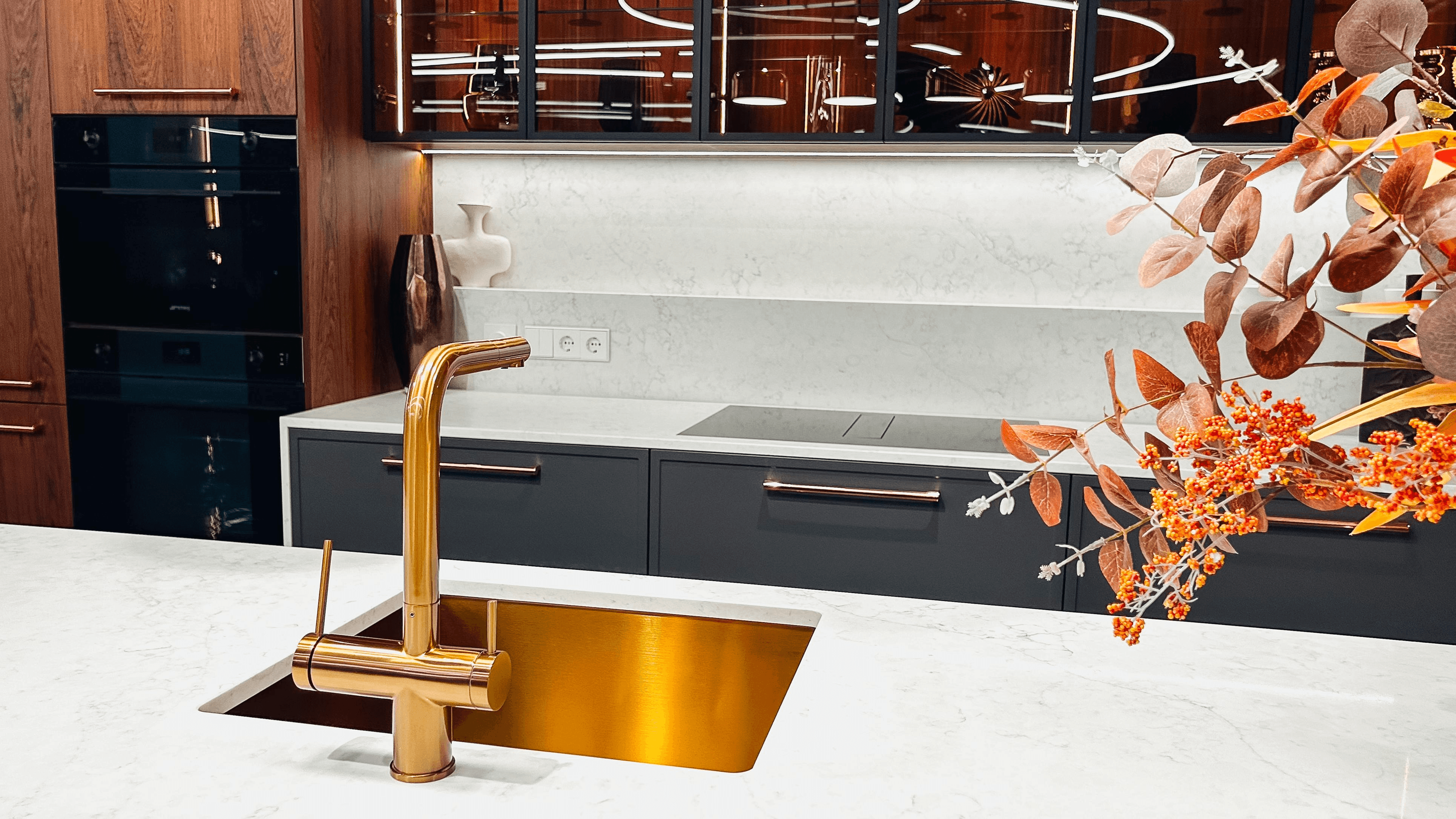 You can learn about 8 Warm Quartz and Natural Stone Countertops That Look Stunning with Gold Hardware